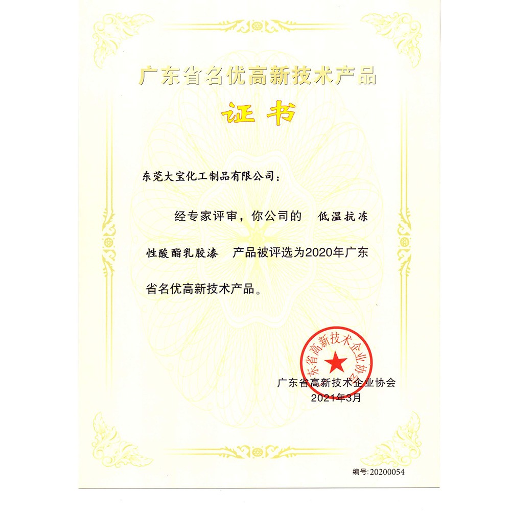 廣東省名優(yōu)高新技術(shù)產(chǎn)品證書(shū)(乳膠漆)