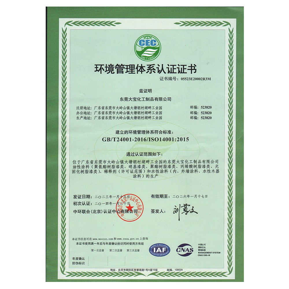 環(huán)境管理體系認(rèn)證(東莞大寶)