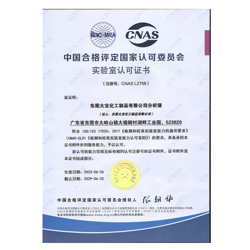 國(guó)家實(shí)驗(yàn)室認(rèn)可證書(shū)