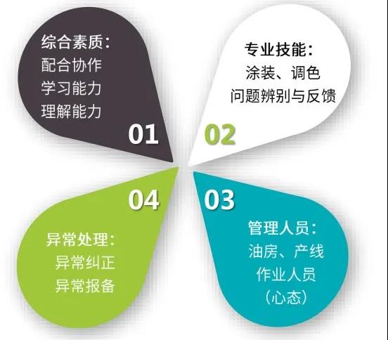 木家具涂裝工藝復雜,在實際作業(yè)過程中難免會出現(xiàn)各種問題,且一個問題的產(chǎn)生可能同時與一個或幾個因素有關(guān)。與涂料、機械、素材因素相比人為因素最為復雜、難控。不但要求人員具備理論知識,還需要實操技術(shù),端正的工作態(tài)度和工作責任心,不接受、不流放、不制造不良品等。