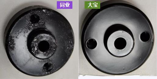 大寶漆與同業(yè)水性黑色啞光金屬烤漆在鋅合金素材上耐鹽霧500小時(shí)對(duì)比測(cè)試結(jié)果: