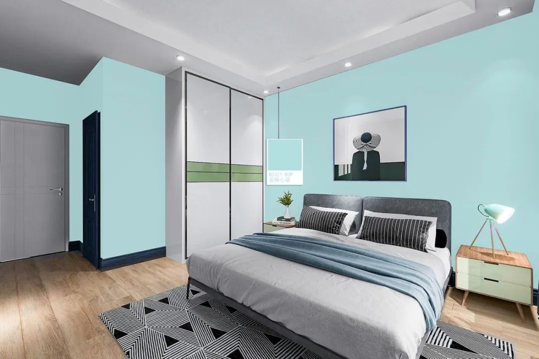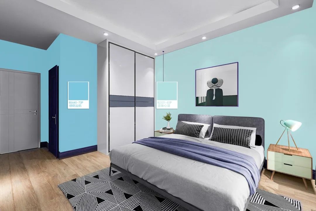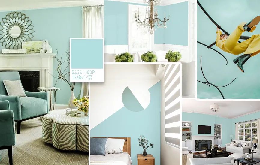 相近色也叫類似色,是運(yùn)用標(biāo)準(zhǔn)色環(huán)上任何部分的45°-60°內(nèi)的色。EX:黃-黃綠-綠;紅-紅橙-橙..等,均為相近色。藍(lán)綠色系不論用在何處,皆能適度提升溫柔與優(yōu)雅,大寶設(shè)彩家刻意挑選純度調(diào)節(jié)到中等程度的B5640-73P揚(yáng)帆遠(yuǎn)航,是一淡化過(guò)后的藍(lán)色,飽和度低、明度高,搭配起來(lái)能帶給人寧?kù)o平和的感受。當(dāng)然選色處理得當(dāng),色感也更加豐富,相似色組合搭配能表達(dá)在維持原有風(fēng)格的同時(shí),讓空間視覺(jué)更有層次感。