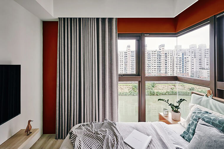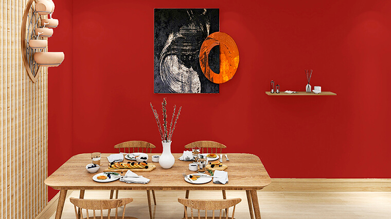 在考慮色彩配置時,若無法接受飽和度太高的紅,非常推薦使用大寶R8855-40D故宮紅,屬于低彩度深紅色系,除了與上述顏色搭配外,更適合放在空間某處作為焦點,例如玄關(guān)、電視背景墻..等,讓人不自覺的往此處吸引,在視覺上擁有亮點帶出時尚摩登感。
