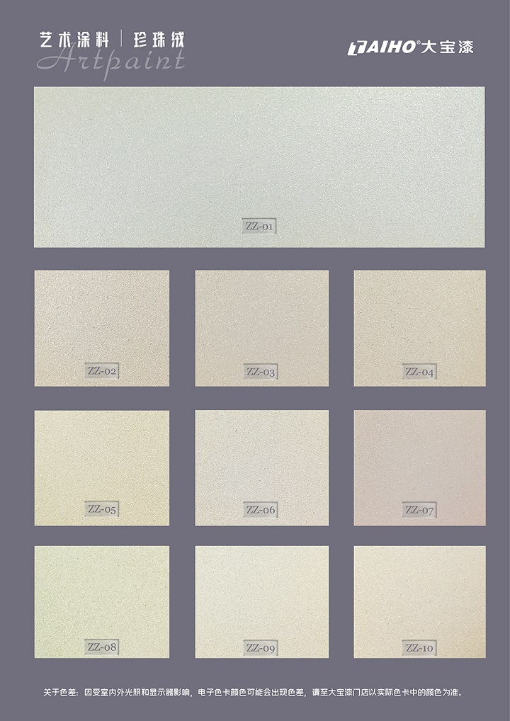珍珠絨藝術(shù)涂料以優(yōu)質(zhì)珠光顏料為基礎(chǔ),結(jié)合環(huán)保樹脂乳液的黃金比例調(diào)制而成。其以水作為分散介質(zhì),施工過程中僅揮發(fā)水分,不含任何苯、甲醛等有害物質(zhì),無毒無害,讓家人住得更安心。
