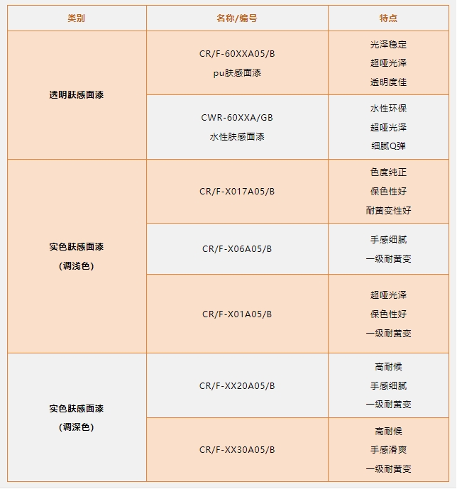 膚感漆可適配多種常見(jiàn)家具板材。其工藝主要通過(guò)在一般底漆上噴涂一道膚感面漆,不直接接觸基材。只要底漆與基材通過(guò)附著力測(cè)試,即可廣泛應(yīng)用于各類(lèi)板材表面。