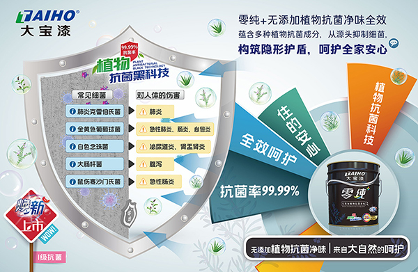大寶漆「零純+植物抗菌」系列煥新升級(jí),融合【無(wú)添加】?jī)粑杜浞?,完成從“抗菌防霉”到“純凈呼吸”的安全躍升—無(wú)論新房初裝,還是舊居翻新,皆可安心交付。