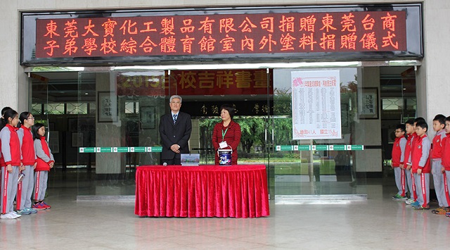 東莞大寶化工對(duì)東莞臺(tái)商子弟學(xué)校新建體育館油漆捐贈(zèng)儀式