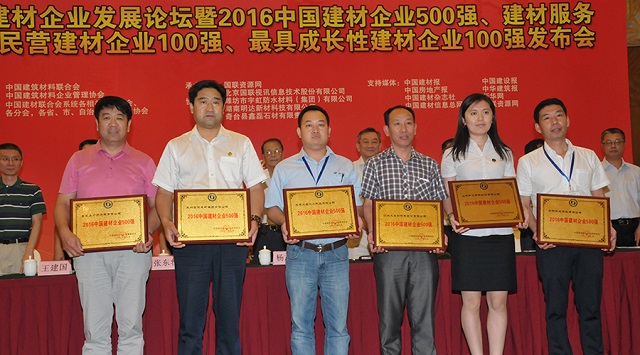 日前,2016年中國企業(yè)發(fā)展論壇暨中國建材500強(qiáng)、建材服務(wù)企業(yè)100強(qiáng)、民營建材企業(yè)100強(qiáng)、最具成長性建材企業(yè)100強(qiáng)發(fā)布會在北京隆重舉行。