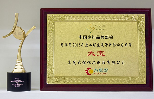 歷經(jīng)數(shù)月激烈的票選角逐,作為綠色涂料首選品牌的大寶漆憑借著過硬的產(chǎn)品質(zhì)量及雄厚的銷售實力,從眾多涂料生產(chǎn)品牌中脫穎而出,一舉獲得了“2015年度工程涂料影響力品牌”、“2015年度家具漆影響力品牌”、“2015年度墻面漆影響力民族品牌”三項殊榮。