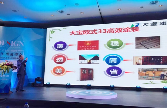涂料作為木器產業(yè)鏈的下游產業(yè),與家具行業(yè)有著天然的聯系。作為青木大講堂戰(zhàn)略合作伙伴、木制品涂裝工藝顧問,大寶漆不負所望,為大會帶去了“大寶漆定制家具涂裝解決方案”即大寶歐式涂裝三三專案。黃文敏高專從大寶漆的特點與優(yōu)勢入手,突出了歐式涂裝所具備的“薄、透、美、穩(wěn)、簡、省”等特點。