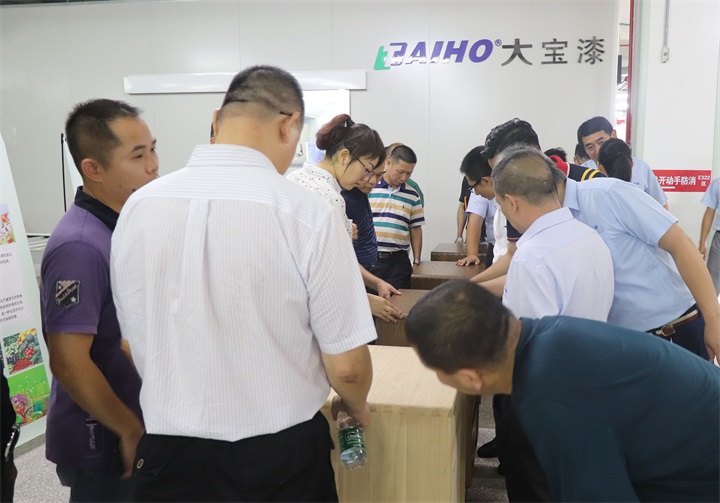 面對大寶化工先進的生產管理模式、干凈整潔的廠區(qū)環(huán)境,關會長一行對大寶漆給予了極大的肯定和高度贊譽。隨后,雙方就就木門涂裝工藝、產品技術、木門行業(yè)發(fā)展現狀和趨勢等展開了深入交流,共同探討木門發(fā)展之道。