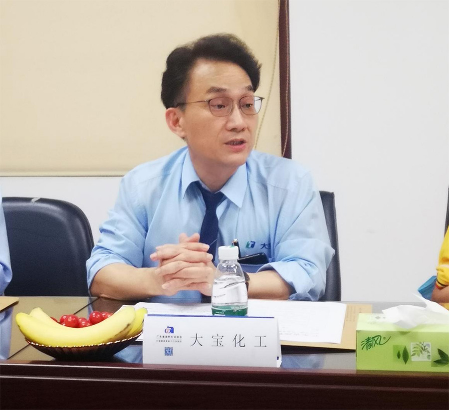 首先,東莞大寶化工副總經理葉子琛對廣涂協(xié)一行的到來表示誠摯的歡迎和感謝,并重點介紹了大寶近30年的布局與發(fā)展。