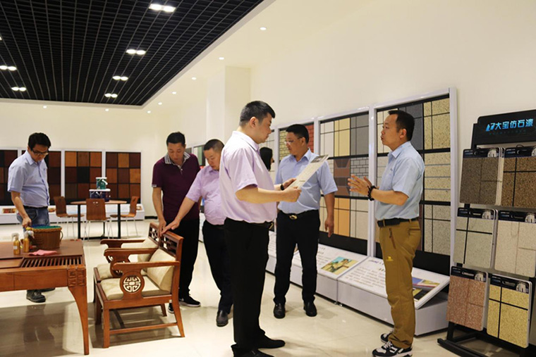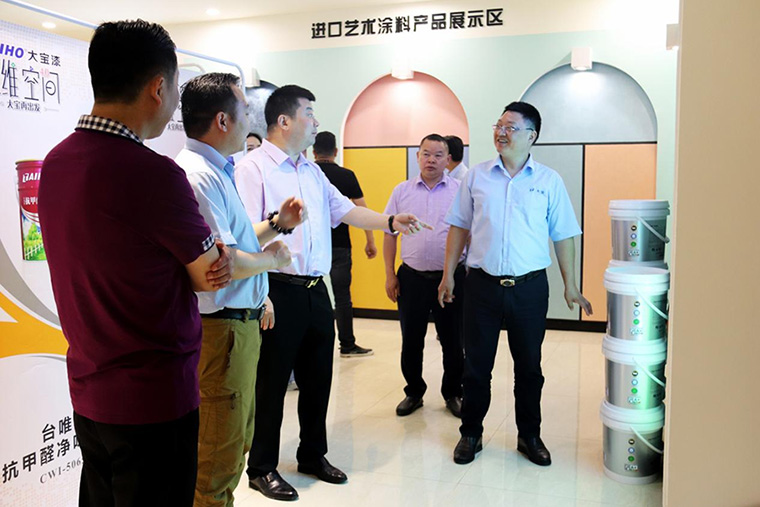 ▲業(yè)三部王華生課長介紹形象展示區(qū)及涂料產品