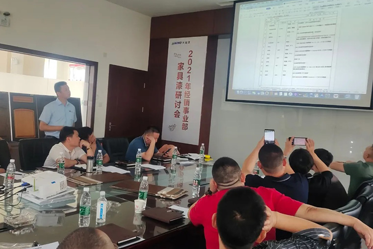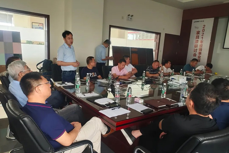而后,經(jīng)銷事業(yè)部家具漆執(zhí)行經(jīng)理劉國勇帶來了以“破局 共生”為主題的工作報告。劉執(zhí)行經(jīng)理首先對家具行業(yè)從國際環(huán)境到國內(nèi)環(huán)境到市場環(huán)境現(xiàn)狀進行了深入的分析,從公司在國內(nèi)市場布局、2021年上半年業(yè)績達成情況分析、客戶定位、產(chǎn)品品項突破、特色化產(chǎn)品、市場流通型產(chǎn)品、服務支持等方面進行了全面的講解,通過“破局 共生”兩部分希望公司與經(jīng)銷商一起并肩作戰(zhàn),共迎困難。