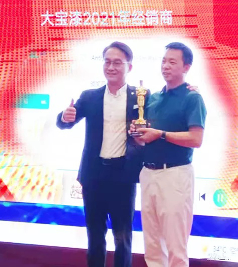 會議伊始,經(jīng)銷事業(yè)部葉子琛副總經(jīng)理為不忘初心、始終堅守,專心經(jīng)營大寶漆的武漢寶塔商貿(mào)李軍總經(jīng)理(以下簡稱李總)頒發(fā)特別感恩獎,對20多年來用心經(jīng)營大寶漆的李總所做的貢獻給予高度肯定和感謝。
