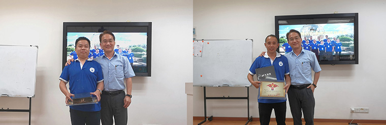 培訓(xùn)期間,評(píng)委老師們?yōu)閷W(xué)員們的作品進(jìn)行了評(píng)分,評(píng)選出兩位優(yōu)秀學(xué)員,是來自南昌大寶的陳世水和毛端康。由經(jīng)銷事業(yè)部葉副總為優(yōu)秀學(xué)員頒發(fā)獎(jiǎng)牌與禮品。