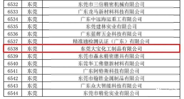 近日,廣東省工業(yè)和信息化廳公布了《關(guān)于公布2022年專精特新中小企業(yè)和2019年到期復(fù)核通過企業(yè)名單的通知》,東莞大寶化工制品有限公司順利通過各級部門的審核,被認定為2022年度廣東省“專精特新”中小企業(yè)。
