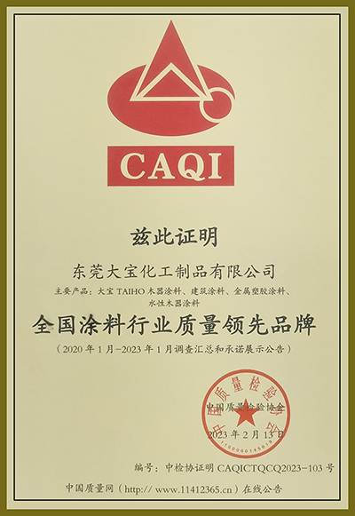 “提振消費信心”,為推動高質(zhì)量發(fā)展提供動力。一年一度的“3·15” 消費者權(quán)益日來臨之際,大寶漆憑借過硬的產(chǎn)品和服務(wù)質(zhì)量,再次榮獲中國質(zhì)量檢驗協(xié)會頒發(fā)的“全國質(zhì)量檢驗穩(wěn)定合格產(chǎn)品”、“全國涂料行業(yè)質(zhì)量領(lǐng)先企業(yè)”、“全國涂料行業(yè)質(zhì)量領(lǐng)先品牌”多項權(quán)威認證。