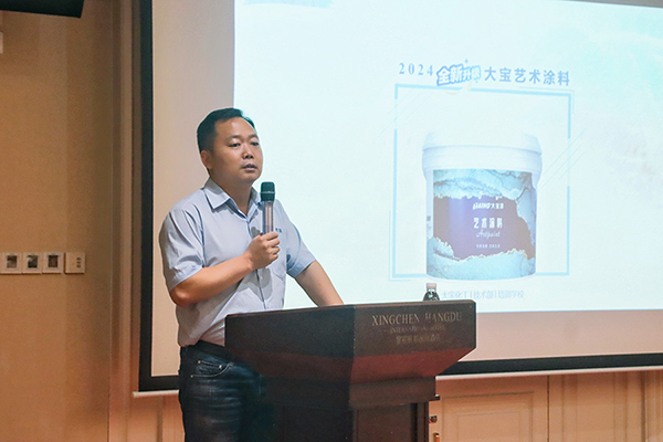 西南區(qū)王總監(jiān)詳細(xì)介紹大寶藝術(shù)涂料施工工藝及效果展示。通過(guò)生動(dòng)的案例和詳細(xì)的演示,與會(huì)者對(duì)新品的性能和優(yōu)勢(shì)有了更深刻的認(rèn)識(shí)。