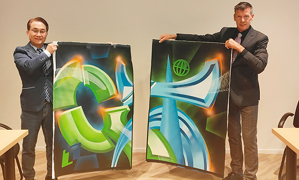 The signing ceremony was uniquely creative and emotionally significant. Global Paint President Kees specially invited a renowned local artist to create an oil painting featuring the letters "G" and "T," representing Global Paint and Taiho Paint, respectively. The artwork blended Eastern and Western artistic e-xpressions. On the day of the signing, representatives from both sides jointly cut the painting in half, each retaining one portion as a symbol of the profound connection between the two companies, transcending geography and culture.