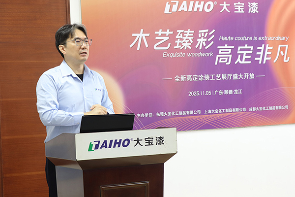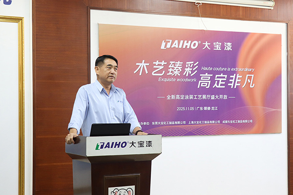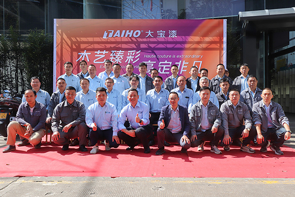 11月5日,大寶漆順德·龍江全新高定涂裝工藝展廳盛大啟幕?;顒右浴澳舅囌椴?高定非凡”為主題,大寶化工直銷事業(yè)部總經(jīng)理張正賢、業(yè)務一部副總經(jīng)理周志鴻、業(yè)務一部營銷總監(jiān)葉小兵以及順德辦全體業(yè)務與工程服務人員等,共同見證了這一服務升級的新里程碑。