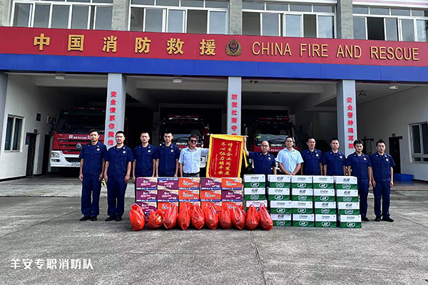在“八一”建軍節(jié)來(lái)臨之際,成都大寶化工制品有限公司管理部副理賴俊良、副課長(zhǎng)段亞波和楊路等一行人,帶著誠(chéng)摯的問(wèn)候和深深的敬意,來(lái)到邛崍市消防救援大隊(duì)及羊安專職消防隊(duì),慰問(wèn)奮戰(zhàn)在火海前線、保衛(wèi)一方平安的消防官兵,為他們送上夏日的清涼。
