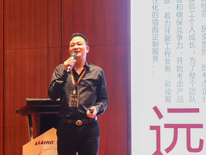 隨后,家裝事業(yè)部經(jīng)理黃文敏作家裝漆總結(jié)報告。他通過成功經(jīng)營案例、大寶漆2019年市場布局為經(jīng)銷商加油打氣。他指出,公司將通過內(nèi)部整合、外部資源運(yùn)用,和經(jīng)銷商協(xié)同謀贏,再創(chuàng)佳績。