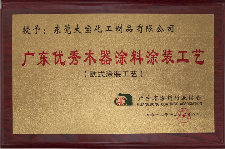 大寶漆歐式涂裝工藝榮獲“廣東優(yōu)秀木器涂料涂裝工藝”