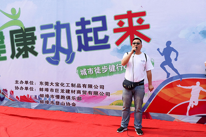 開(kāi)幕式上,蚌埠慢跑俱樂(lè)部楊會(huì)長(zhǎng)致開(kāi)幕詞,他強(qiáng)調(diào)徒步和慢跑對(duì)于現(xiàn)代人們健康的重要性。大寶漆華東二區(qū)業(yè)務(wù)總監(jiān)謝重亮向參加徒步的健將們介紹了戶外運(yùn)動(dòng)要注意的事項(xiàng)。接著,蚌埠巨龍建材張俊良總經(jīng)理發(fā)言。他表示,大寶漆作為綠色環(huán)保涂料的制造商和涂裝解決方案的供應(yīng)商,長(zhǎng)期以來(lái),秉持“堅(jiān)持品質(zhì),永續(xù)環(huán)?!钡睦砟?,為廣大消費(fèi)者提供綠色環(huán)保的涂料產(chǎn)品。此次大寶漆舉行蚌埠徒步健身活動(dòng),是希望為蚌埠市民帶來(lái)積極健康的生活方式,引導(dǎo)更多人參與運(yùn)動(dòng),提高身體素質(zhì),與大家攜手共創(chuàng)健康的生活方式,共建綠色家園!最后他宣布2018年蚌埠大寶漆健康徒步行活動(dòng)正式開(kāi)始。