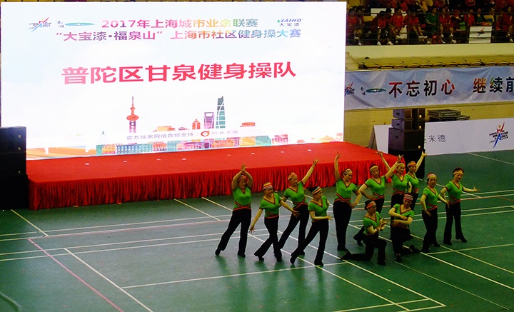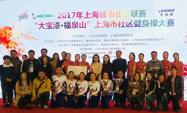 11月25日下午,由上海市社會(huì)體育管理中心、青浦區(qū)體育局、重固鎮(zhèn)人民政府主辦,上海大寶化工制品有限公司獨(dú)家冠名的大型市民健身操大賽——2017年“大寶漆·福泉山”杯在青浦體育館隆重舉行,來(lái)自上海市16個(gè)區(qū)22支隊(duì)伍共300多名選手匯聚一堂,在這一年一度,代表上海市社區(qū)健身操最高水平的大賽上,跳出活力,舞動(dòng)申城。
