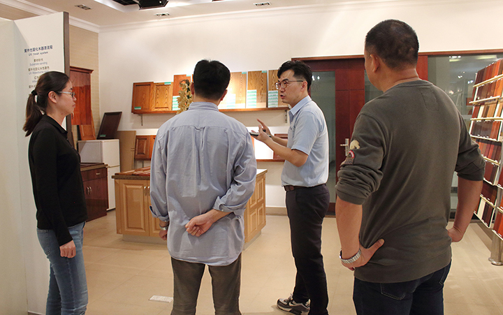到訪領(lǐng)導(dǎo)一行還參觀了東莞大寶化工現(xiàn)代化的廠房設(shè)備、智能化涂裝線、一流的中央實驗室和展示家具漆產(chǎn)品完美施工效果的色板中心等地,增進了彼此的了解和進一步合作的信心。針對“油改水”問題,工作人員向參訪人員介紹了大寶漆水性漆的工藝和質(zhì)量控制情況,詳細回答了馬總、李總一行對智能涂裝線的提問。考察人員對大寶漆先進的生產(chǎn)管理和環(huán)保理念給予了高度評價。