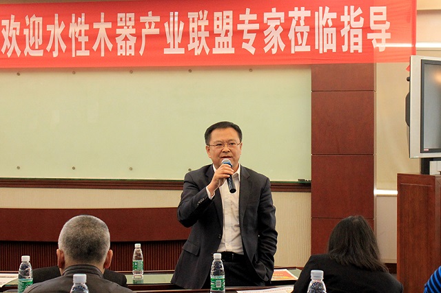 中國水性木器涂料產(chǎn)業(yè)聯(lián)盟主席楊獻(xiàn)發(fā)言