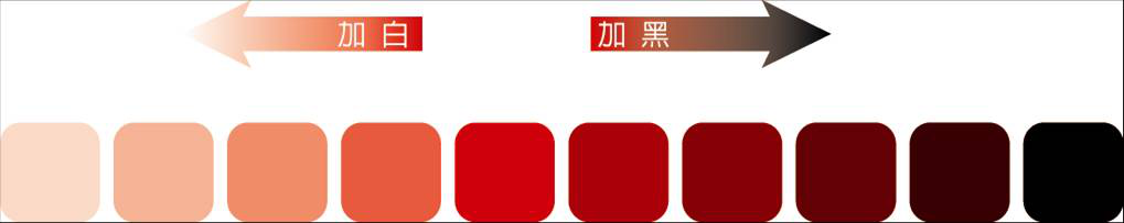 3. 影像處理中改變色調(diào)的方式??梢栽谕簧嗌?,加入白色來提高明度;加入黑色來降低明度的方式,產(chǎn)生一系列的色彩變化,如淺紅、淡 紅、亮紅、深紅、暗紅即是紅色不同的明度變化。