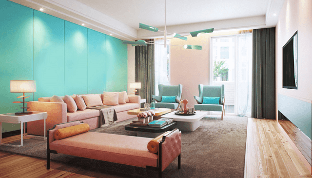 甜而不膩,給人舒緩淡雅、恬靜溫和的視覺感受,搭配粉嫩的馬卡龍色系可以消除煩惱、抵抗壓力。柔軟的沙發(fā)搭配上糖果般的色彩,讓人能忘卻一天的疲累讓身心更加放松。