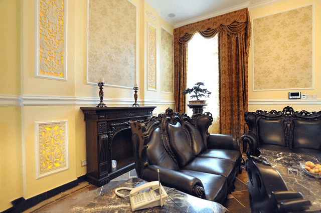 確立主調(diào)統(tǒng)率空間的色彩關(guān)系。當(dāng)空間上有幾個色塊時,必須以其中一塊顏色為主,而且其面積,明度,位置大于其它色塊。黑色、白色與白楊金相交對比之下,能激起十分矚目的是絕火花。