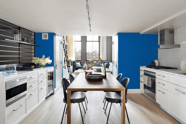 運用琥珀藍與珊瑚橘對比色碰撞出沖擊力的色彩力量,一般的居宅大多會以低彩度的色調(diào)創(chuàng)造出寧靜感,而橘色的存在則可以反轉(zhuǎn)這樣的調(diào)性,創(chuàng)造視覺亮點。